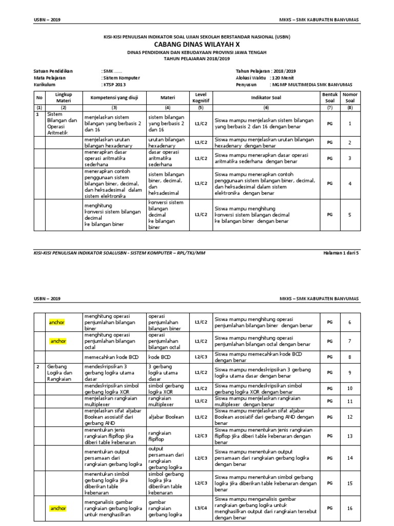 1 Kisi Kisi Sistem Komputer K2013 Rpl Tkj Mm 2019 Anchor