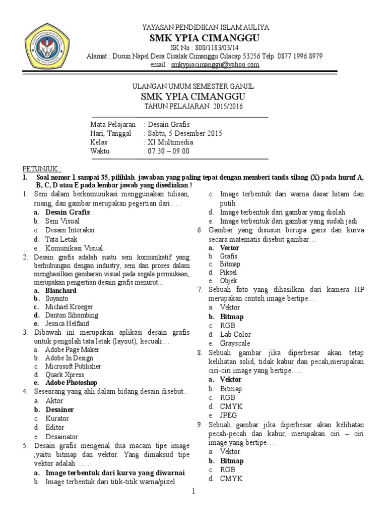 Soal yang akan saya sajikan kali ini berupa 40 pilihan ganda dan 10 essay. Dapatkan Juga Soal. Soal Pts Desain Grafis Perceta.